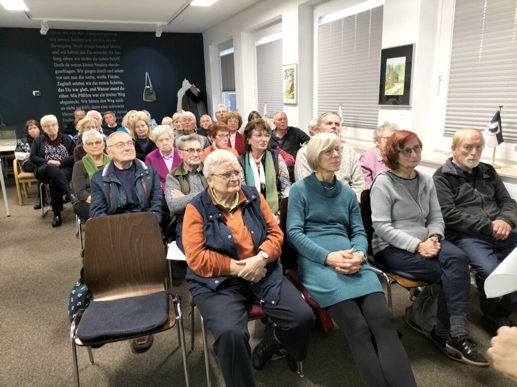 Der Vortrag von Vera Thiel entwickelte sich zu einer Veranstaltung, die bis auf den letzten zur Verfügung stehenden Stuhl besetzt war. Die Ausführungen der Referentin mit eigenen Worten, Bildpräsentation, Briefen und Gesprächsnotizen, gepaart mit fundiertem Geschichtswissen, beeindruckten die Besucher sehr, stimmten nachdenklich und sorgten für lebhafte Gespräche nach Ende des Vortrags.